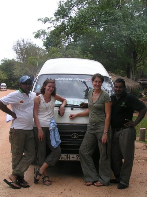 Ja, und am Mittwoch haben wir dann unseren ersten Ausflug gestartet, Marion, Madeleine und ich wollten das „kulturelle Dreieck" erkunden. Los gings um 5.30 Uhr (geplant war zwar 5 Uhr, aber wer ist hier in Sri Lanka schon pünktlich?!), wir hatten uns einen Fahrer mit Van gemietet, weil wir das einfacher und angenehmer fanden, als alles mit dem Zug und Bus zu erkunden. Der Fahrer, Santha, war super nett und witzig, sprach aber leider nicht ganz so gut Englisch. Dabei war auch noch Sumudu, ein Tourguide, der sich den Spaß, mit drei Mädels unterwegs zu sein, natürlich nicht entgehen lassen wollte. Wir sind dann also zuerst nach Anuradhapura gefahren und waren dank Santhas Fahrkünsten nach 3 Stunden da. Wir haben dann erst mal in einem lokalen Restaurant gefrühstückt, es gab lecker Paratha, Springhoppers, Dhal und Chili Paste Danach haben wir unser kulturelles Programm gestartet und uns die Ancient City angeschaut. Mit dabei war die Abhayagiri Dagoba, die höchste Dagoba in Sri Lanka, die Thuparama Dagoba, die älteste Dagoba in Sri Lanka, der Sri Maha Bodhi Tree (der Baum, unter dem Buddha seine Erleuchtung gefunden hat), und diverse andere Ruinen und Figuren.