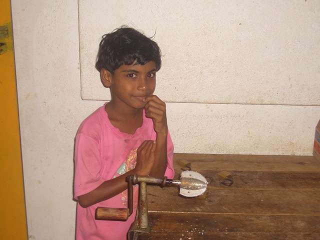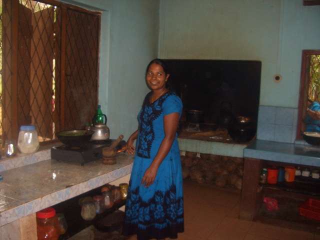 Hier ist die Küche des Angels Home for Children und gekocht wird noch über dieser Feuerstelle. Die Kinder sind größtenteils in der Schule und nur zwei der Großen, Sanduni und Mali, die sich aufs Examen vorbereiten, sitzen draußen und lernen. Ich helfe Depani das Mittagessen zuzubereiten und lerne die Rezepte der verschiedenen Currys. Neben den 8 kg Reis, die täglich in der Küche gekocht werden, gehören zum Lunch zusätzlich immer noch 3-4 Currys. Meisten gibt es ein Soja-, Chicken- oder Fischcurry, ein Gemüsecurry und ein Kartoffelcurry oder Dahl.