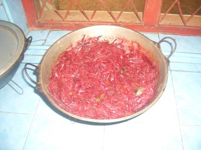 , dazu fügt man Süßkartoffeln und natürlich Kokosmilch, außerdem kommen verschiedene Gewürze hinzu, wie Kurkuma, Dillsamen, Pfeffer, Currypulver, Curryblätter und Salz. Alles zusammen wird nun solange gekocht, bis die Kartoffel gar sind.
