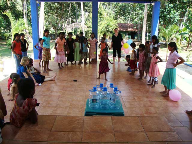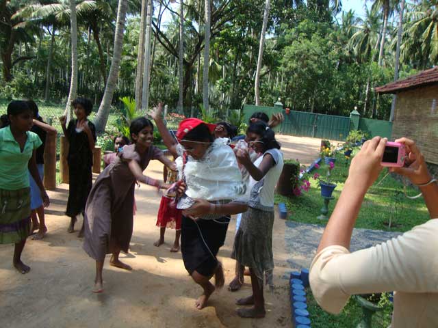 Dann kam der große Tag! Die ganze Woche über haben Svenja und ich alle möglichen Sachen für die Spiele zusammengesammelt. Ob nun die Reissäcke zum Sackhüpfen und zum Verkleiden, 5-Liter-Wasserflaschen zum Dosenwerfen (irgendwie gibt es hier Gott sei Dank kaum etwas aus Konservendosen), die Kokosnüsse im Glas zum Schätzen, Tuschkasten etc. Und am Sonntagmorgen wurden heimlich (!) knapp 50 Wasserbomben befüllt - alleine da waren Svenja und ich schon nass.