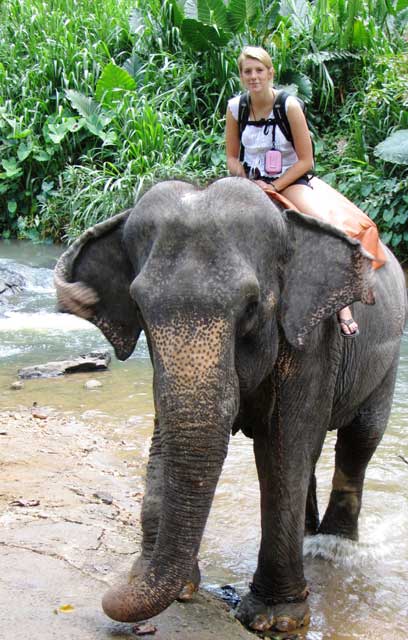 Ca. 3 Stunden saß ich auf der Wagonverbindung zusammengequetscht mit einem französischen Pärchen und hielt mich fest und hoffte bitte nicht vom Zug zu fliegen. Das war eine zum Teil schreckliche, aber auch total witzige Fahrt. Es ging quer durchs Bergland und die Natur war wunderschön. Palmen die am Rande des Flusses ins Wasser ragten und viele Tiere. Eigentlich wollte ich zum „Elephantophanage“ nahe Kandy, ließ mich aber leider vom Tuktukfahrer überreden zu einem anderen Ort zu gehen, wo ich Elefanten sehen und auch reiten könnte. Ich dachte mir wieso nicht und fuhr zu diesem anderen Ort. Doch ich war ein wenig enttäuscht, da mir die Elefanten sehr leid taten und es auch nur 3 Elefanten gab die festgekettet waren. Naja aber der Elefant schien wenigstens ein bisschen Spaß zu haben mit mir durch den Busch zu laufen.