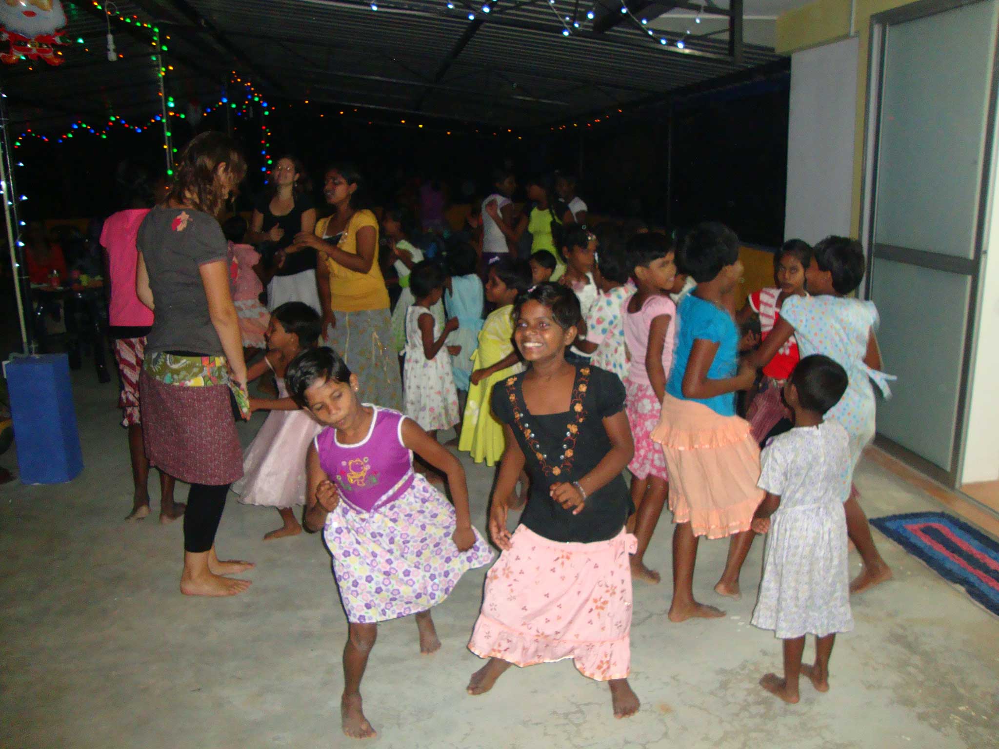Auf der schoenen Dachterasse haben wir mit dem Personal und den Kindern richtig gut geschlemmt und die errungenen Kilos im wahrsten Sinne des Wortes direkt wieder abgeschuettelt J Ab ca. 20 Uhr wurde naemlich das singhalesische Tanzbein geschwungen. Bei der Hitze und bei meinem fortgeschrittenem Alter war es eine Herausforderung mit den Maedchen halbwegs mithalten zu koennen! Aber der Spassfaktor war so hoch, dass man von durchschlaegigen Rhytmen und fliegenden Roecken einfach mitgerissen wurde.