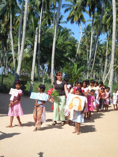 Da habe ich lieber ein zweites Stueck Kuchen angefangen. Das gab es hier wahrscheinlich auch noch nie. Zur Entschaedigung haben sich dann alle den Bauch mit Kuchen vollgeschlagen und die Kinder haben mir noch Geburtstagskarten ueberreicht und eines nach dem anderen hat mir gratuliert und sich teilweise auch zu meinen Fuessen gelegt, was hier in Sri lanka Dankbarkeit ausdrueckt.