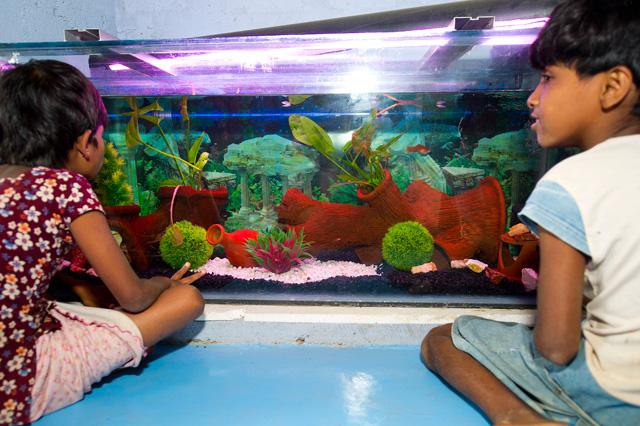 Im Angels Home angekommen traf ich auf die ersten neugierigen Mädchen, die sich höflich vorstellten. Neben den Mädchen bildeten einige Mitglieder des Personals ein kleines, freundliches Empfangskomitee. Nachdem Julia mir das Heim gezeigt hatte, musste ich für mich feststellen, dass mir die Fischaquarien spontan am besten gefielen. Ein paar Mädchen empfanden wohl ähnlich und hatten sich in diese beruhigende Oase zum Lernen zurückgezogen.
