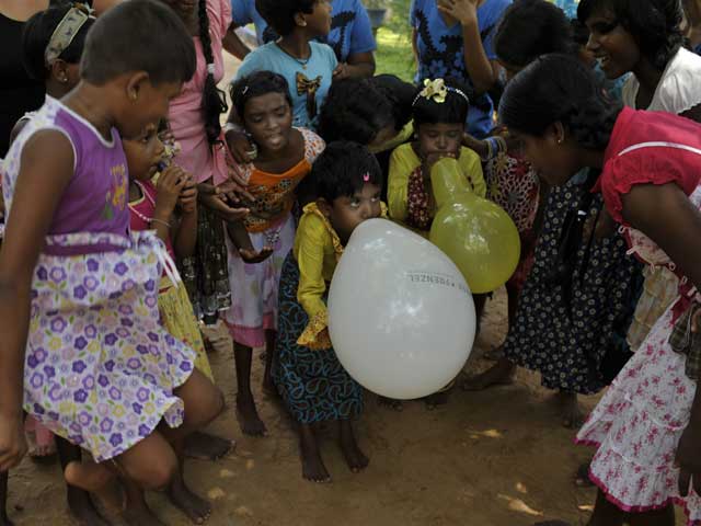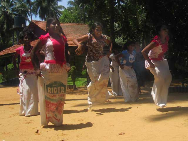Weitere Spiele, bei denen auch mir aus Deutschland bekannte Aufgaben dabei waren, füllten den restlichen Tag: Sackhüpfen, Wettessen, Eierwerfen, Hindernisrennen, Eierweitwurf sowie um die Wette Luftballons zum Zerplatzen bringen sind nur ein paar erwähnenswerte Tätigkeiten. Besonders hervorheben möchte ich die Leistung von Padmini beim Luftballon aufblasen. Padmini war bemerkenswert diejenige, die am meisten und am schnellsten Luft aus ihrer Lunge in den Ballon geblasen hat. Leider hat sie bei der großen Anzahl von Luftballons keinen 0/8/15 Luftballon erwischt, sondern einen Markenballon aus Deutschland. J Sie hatte nach wenigen Sekunden den Luftballon gefüllt, aber er wollte und wollte einfach nicht platzen… Andere Kinder hatten es bei der Wahl des Ballons günstiger getroffen und erzielten schneller das Zerplatzen des Ballons. Padmini konnte die Situation nicht wirklich einschätzen und pustete bis ins Unermessliche weiter Luft in ihren Ballon. Am Ende musste sie zwar geschlagen aufgeben, aber für uns blieb sie die Siegerin der Herzen…