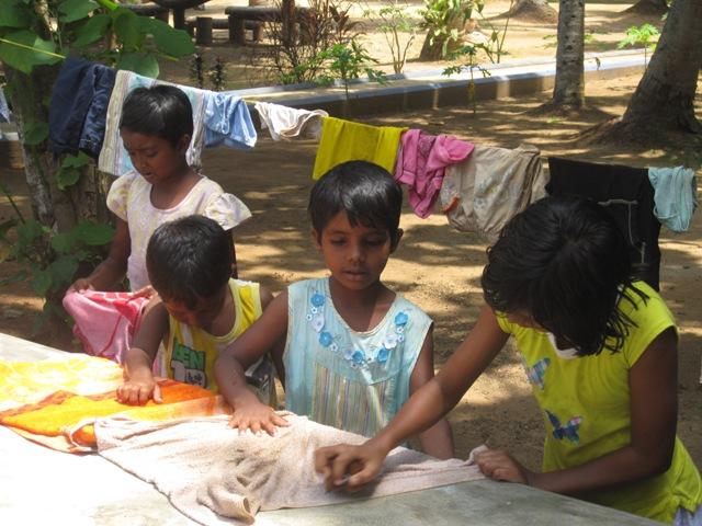 Das Leben im Angels Home ist hart, aber fair. Trotz nach deutscher Sichtweise niedrigen Lebensunterhaltungskosten in Sri Lanka, versuchen wir im Angels Home sparsam, rücksichtsvoll und vor allem nachhaltig mit materiellen Dingen und der Umwelt umzugehen. Dazu gehört ein hohes Maß an Strenge, Disziplin und Autorität von Seiten des Personals um 50 Kinder in gewisser Weise zu erziehen. Ich habe großen Respekt davor mit welcher Genauigkeit und Nachdrücklichkeit, aber Geduld und Leidenschaft sie für die Kinder aufbringen. Sie haben es oft nicht leicht. Zwei der Kindermädchen leben 24h mit den Kindern im Heim. Ich erzähle ihnen immer wieder meine Hochachtung vor ihrer Arbeit. Obwohl sie so oft Ermahnungen und Zurechtweisungen aufbringen müssen und, meiner Meinung nach, die negativen Momente den Positiven quantitativ oft überlegen sind, erfüllen die Lächeln der Kinder, die Freude einer Umarmung sowie die Dankbarkeit für Hilfe und Unterstützung trotzdem auch die Herzen der beiden Kindermädchen. Tag für Tag fragen sie sich wahrscheinlich, was mache ich hier eigentlich, aber Tag für Tag wissen sie auch, für was sie es machen.