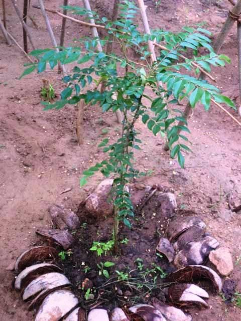 Die Currybäume hier sind noch sehr jung und dementsprechend klein aber ein ausgewachsener Currybaum kann bis zu 6 m hoch werden und eine bis zu 4 m breite Krone haben.