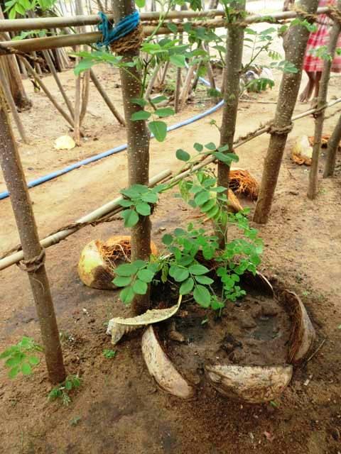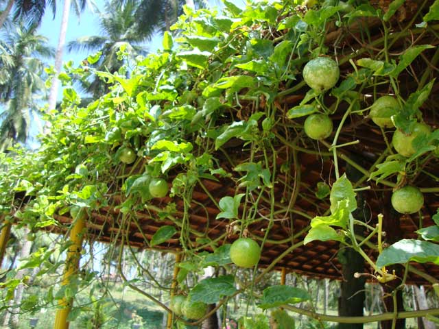 Außerhalb der eingezäunten Gartenabschnitte gibt es außerdem nach zahlreiche Kokosnusspalmen, Jackfruitbäume, Chashewbäume.