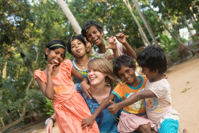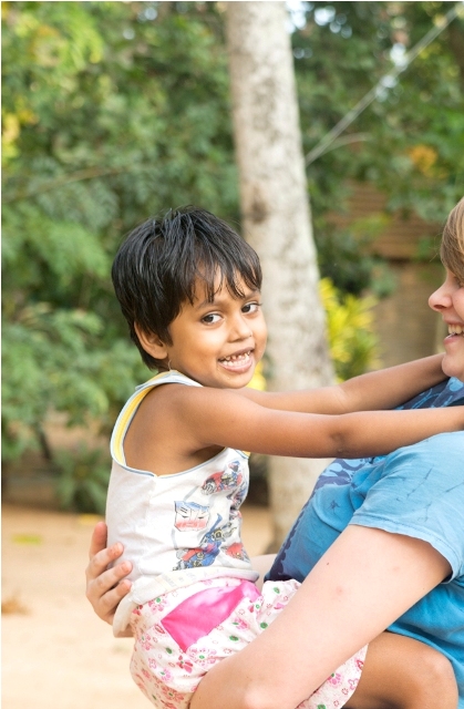 Dann denke ich an die kleine Achini, die so oft auf mich zugerannt kommt und mir ganz viel auf Singhalesisch erzählt und Fragen stellt. Oftmals hat von uns keiner auch nur die leiseste Ahnung davon, was der andere sagt und trotzdem reden wir irgendwie miteinander. Auch denke ich an die Gartenarbeit, bei der Bodika manchmal vor mir steht, mich angrinst und sich vor der Arbeit drücken möchte. Normalerweise würde ich etwas sagen wie „Na komm, schnapp dir den Besen, dann kannst du dahinten anfangen“, jedoch gibt es „normalerweise“ hier nicht. Hier versuche ich Bodika das auf andere Weise zu sagen, nämlich „mit Händen und Füßen“![]()