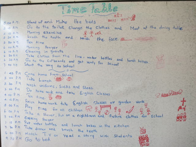 Routine bringt ja auch sehr viel Verlässlichkeit mit sich und wenn man bedenkt, aus was für Verhältnissen die Mädels kommen, dann tut ihnen diese Verlässlichkeit der Routine gut – und ganz ehrlich den Tagesablauf einer Gruppe aus über 50 Menschen kann man ohne Plan und Routine gar nicht managen…