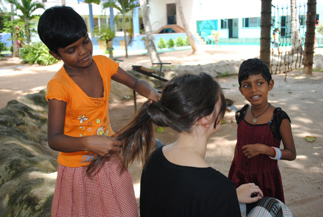 Jeden Tag kann ich mehr Namen, kenne die Mädchen besser, weiß, mit wem ich wie am besten Scherzen kann oder mit wem ich einfach nur ein bisschen dasitze und mich unterhalte. Jeden Tag wird öfter mein Name gerufen, mir werden Spiele erklärt und ich bekomme mehr lächelnde Gesichter. Und das alles wegen meiner Haare.
