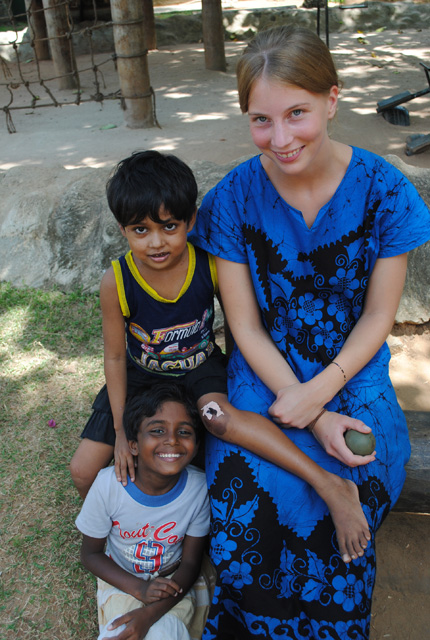 Der erste Kontakt vor allem zu den kleinen Kindern kam durch das Fühlen. Meine Haut wurde berührt und meine Haare wurden geflochten, zusammengesteckt und dabei mit Spangen oder Blumen verziert. Schritt für Schritt wurde aus dem Fühlen ein Sprechen, aus dem Sprechen wurden gemeinsame Spiele, aus den gemeinsamen Spielen wurde Spaß. Und aus dem Spaß entsteht langsam eine vertraute Atmosphäre. Es wird nach meiner Hand gegriffen, nach meiner Aufmerksamkeit gesucht und nach einem freien Platz in meinem Arm Ausschau gehalten. Fragen und gefragt werden. Die wichtigsten Fragen scheinen „What´s your mothers and fathers name?“, „ Have you a sister or a brother?” and „ Catholic or Buddhist?“ zu sein. Die Kinder achten darauf, wie ich mich in den verschiedensten