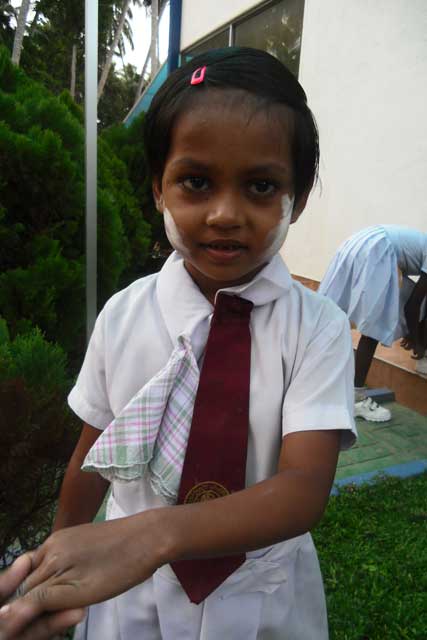Danach wird das Puder aus dem Schrank gekramt. Weißes Puder wird auf das Gesicht aufgetragen. Dabei heißt es: Je heller die Haut desto besser. Während in Deutschland alle ins Solarium rennen, sich Bräunungscreme auftragen und versuchen, anhand von Make up einen schön gebräunten Teint zu bekommen, gilt in Sri Lanka helle Hautfarbe als Schönheitsideal.