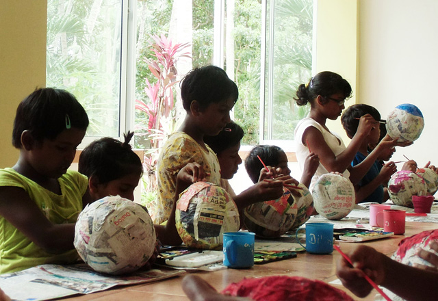 Mittlerweile beherrsche ich außerdem die Namen aller Mädchen, welche in den Ferien nicht zu ihren Familien gefahren sind und auch immer mehr Kinder rufen nach mir, ohne vorher fragen zu müssen, wie ich heiße. Sie zeigen mir ihre Lieblingsspiele, fragen nach deutschen Wörtern und verraten mir im Gegenzug singhalesische Vokabeln. Sie backen Sandkuchen für mich oder setzen sich einfach zu mir, um mich breit anzugrinsen. Während es in den ersten Tagen vor allem die Jüngeren sind, welche interessiert auf mich zukommen, werden auch einige der älteren Mädchen mir gegenüber immer offener.
