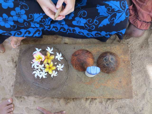 Genauso vielseitig sind die verschiedenen, wunderschönen Blumen. Oft werden auch wir Praktikantinnen mit ihnen geschmückt, sie werden uns ins Haar gesteckt oder wie bekommen selbstgebastelte Blumenarmbänder umgelegt. Auch Kokosnussreste werden gern zu Ohrringen und anderem Schmuck umfunktioniert.