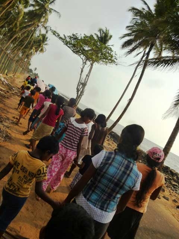 Nach ein paar wunderschönen Stunden am Strand gingen wir dann alle erschöpft aber glücklich wieder zurück ins Angels Home und Hiruni sagte auf dem Heimweg mit einem Lächeln im Gesicht zu mir: „Today is a very good day“.