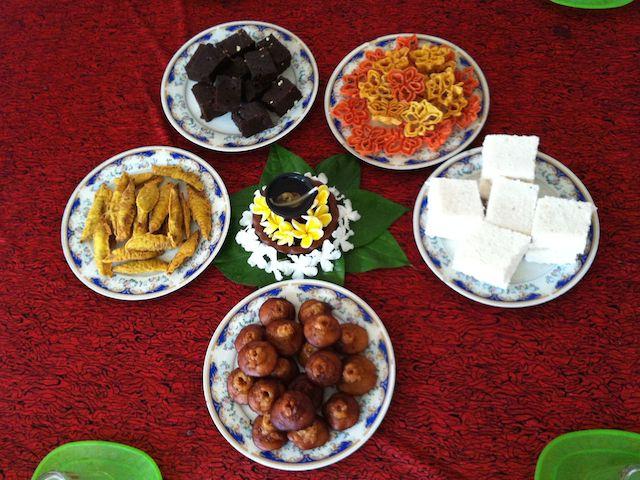 Ein weiterer kulinarischer Höhepunkt war der Neujahrstag, den wir mit einem gemeinsamen Besuch im Tempel begannen. Zurück im Angels Home warteten alle gespannt und mit knurrendem Magen auf unser Frühstück. Das Warten hatte sich gelohnt, genau um 11.05h wurde feierlich ein Öllämpchen entzündet und wir durften verschiedene singhalesische Spezialitäten probieren. Um ehrlich zu sein, waren wir nicht ganz so begeistert von den Leckereien wie die Mädchen. Jedoch miterleben zu dürfen, wie sehr sie sich darüber freuten, machte das gleich wieder wett.![]()