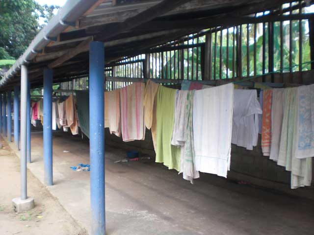 Der Wäschetrockner – ihr mögt es euch denken können – ist eine meterlange Leine auf der die Wäsche in der singhalesichen Hitze dampft. Als Außenstehende empfindet man diese tägliche Waschaktion anfangs als riesiges und dennoch organisiertes und durchaus auch funktionierendes Chaos.