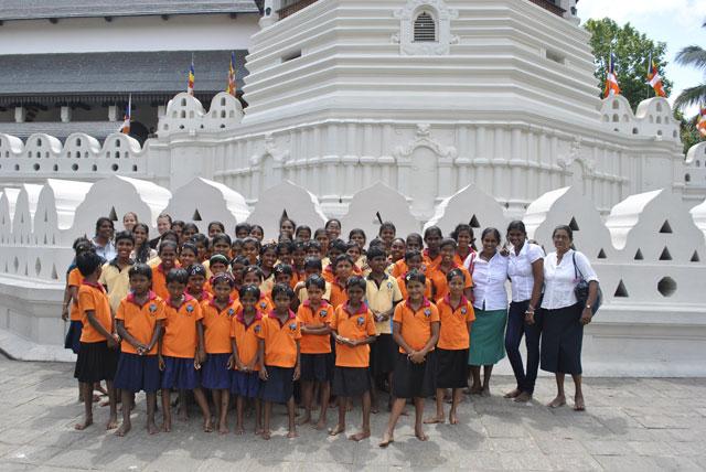 Nach genau drei Stunden Fahrt um 8 Uhr begrüßte uns Kandy mit seinem ganz eigenen Charme, denn die letzte Königsstadt ist wunderschön um einen See herum gelegen. Barfuß und in gleicher Uniform pilgerten die Mädels zum Zahntempel, dem Sri Dalada Maligawa. Wie der Name vermuten lässt, birgt er einen Zahn, genau genommen den linken Eckzahn Buddhas.