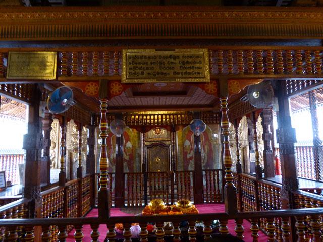 Diese Reliquie ist einem goldenen Schrein und dieser wiederum in einem herrlichen Altar aufbewahrt. Insgesamt lässt der Tempel mit seinem prachtvollen Bau sowie zahlreichen pompösen Altären den ehemaligen Glanz des Königreiches spüren. In den beiden oberen Stockwerken stöberten wir durch ein Museum, das uns die Geschichte Kandys und seiner Könige erzählte. Und einmal mehr wurde deutlich, welch außergewöhnliche Rolle der linke Eckzahn Buddhas spielte: Er galt als Regenbringer und Herrschaftssymbol. Wir erfuhren auf welche Weise dieser Zahn verehrt sowie geschmückt wurde und letztendlich konnten wir den ausgestopften Elefanten bewundern, dem über 50 Jahre die ehrenvolle Aufgabe zu Teil wurde, eben diesen Zahn bei Umzügen und Festen zu transportieren.