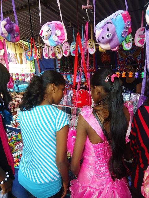 Süßigkeiten, Spielsachen, Schmuck, Haarspangen - alles was das Mädchenherz begehrt. Für die Mädchen gibt es kein Halten mehr und sie stürzen sich in die Menge.