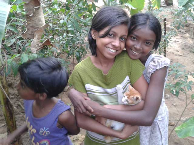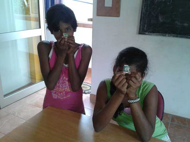 In der ersten Woche war ich noch die einzige Praktikantin und in der Nacht von Dienstag auf Mittwoch holte ich Gesa, die zweite Praktikantin vom Flughafen ab. Schon nach dieser einen Woche sind mir die aufgeschlossenen und lebendigen Kinder ans Herz gewachsen. Ich bekomme täglich eine wunderschöne Frisur geschmückt mit Blumen und werde von links nach rechts gezogen um die verschiedensten höchstinteressanten Insektenarten zu begutachten. Mein neuer Spitzname ist bei manchen Kindern jetzt (Bild sodi)„Monkey“, da ich mein Lieblingstier nennen sollte. Begrüßt werde ich dann auch immer mit den dementsprechenden affigen Bewegungen :D Jetzt klingelt gleich die 13 Uhr Glocke zum Mittagessen und danach habe ich meine erste Englisch Nachhilfestunde mit Kawshaliya, Nethmi und Sandiya. Ich bin mal gespannt wie ich mich so als Laien- Lehrerin mache. Bis zum nächsten Mal, mein Magen knurrt schon.