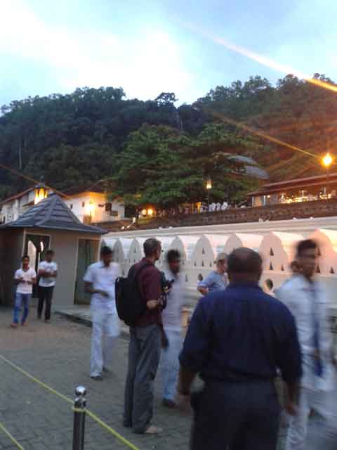 Letzte Woche fuhr ich für zwei Tage nach Kandy. Um 20 vor Neun war ich an der Zughaltestelle in Colombo angelangt, wie mir eine einheimische Frau mitteilte. Eine Stunde später fuhr ich dann mit dem Zug für gerade mal 105 Rs (ca 70 cent!!!) in Richtung Kandy. Es war seine Reise trotz sechs stündiger Dauer allemal wert. Ich schaute mir mit einem anderen deutschen Backpacker aus meinem Hosteleine Sri Lankanische Tanzshow und den berüchtigten Zahntempel an. Der Tempel war auch von innen wirklich wunderschön und überall geschmückt mit Blumengaben.![]()