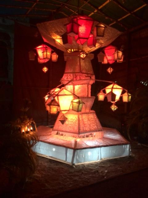 Am Montagabend hatten Ellen, Monika und ich die Möglichkeit mit dem Tuk Tuk nach Nattandya, einem nahgelegenen Ort, zu fahren, um uns dort die Feierlichkeiten zu Ehren Buddhas anzusehen. Es herrschte sehr dichter Verkehr und die Straßen waren voll mit Menschen, die sich das Spektakel rund um die Lampions nicht entgehen lassen wollten. Laute singhalesische Musik schallte aus den vielen Lautsprechern. An jeder Ecke konnte man die hell erleuchteten, kunstvoll verzierten und sich drehenden Lampions betrachten.