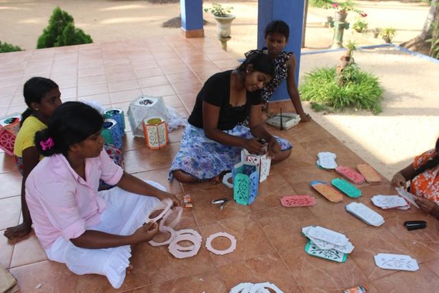 Das Vesak Fest, mit dem Buddhisten die Geburt, Erleuchtung und das Verlöschen Buddhas feiern, prägte mein erstes Wochenende im Angels Home in Marawila. Im Zentrum der Vorbereitungen auf dieses Fest stand auch bei den Kindern hier im Angels Home ein besonderes Kunsthandwerk. Traditionell werden in Sri Lanka für diesen Feiertag bunte Lampions (vesak kudus) gebastelt. So sah man die Mädchen an diesem Wochenende immer wieder in Gruppen, wie sie eifrig Bambusstäbe mit Drähten zu Lampen formten, Papier verschiedener Farben zuschnitten, in diversen Anordnungen auf den Stäben befestigten und schließlich sorgfältig mit flatterndem Krepppapier veredelten.
