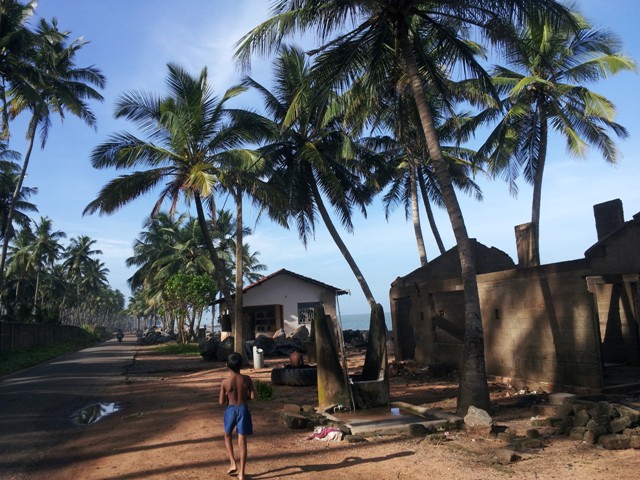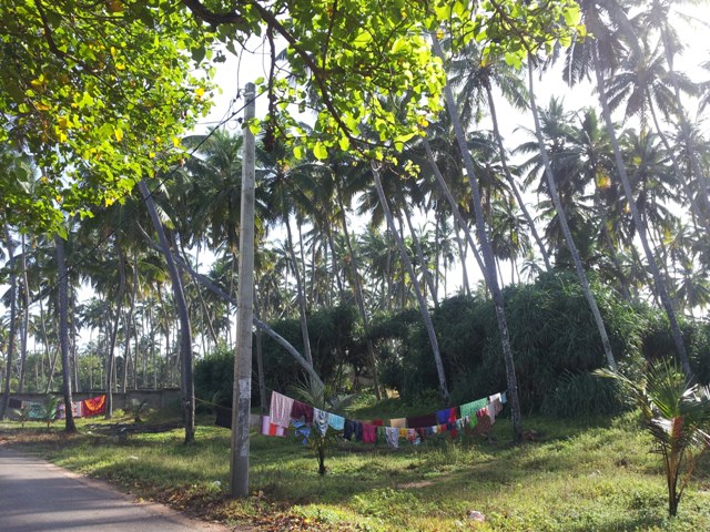 Ich habe mich nun an die vielen neugierigen Blicke gewöhnt, zumal man um seiner eigenen Seelenfrieden Willen hier in Sri Lanka sowieso irgendwann beginnen muss diese zu ignorieren. Denn egal wo du hin gehst, du bist für die Menschen eine kleine Attraktion. Die erstaunten Gesichter, die „Hello, how are you? What‘s your name?“ Zurufe von jungen Sri Lankanern die mich am Tuktuk oder am Moped meist hupend überholen ziehen nun links und rechts an mir vorbei sowie der Rest der Landschaft. Dafür freue ich mich jedes Mal über ein freundliches Lächeln oder ein Winken von jungen Frauen und älteren Damen, die am Straßenrand Fisch verkaufen oder gerade die Wäsche aufhängen.