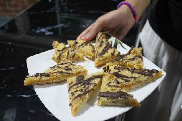 Dazu kommt noch der Umstand, dass das Essen für über 60 Personen natürlich vorgekocht werden muss und, weil es hier keine buffetartigen Wärmeplatten gibt, wird das Essen dann eigentlich immer kalt serviert, denn weder die Kinder noch das das Personal stört es ihre geliebten Reisgerichte kalt und mit den Fingern der rechten Hand zu essen.Umso größer ist dann die Begeisterung unter den Praktikantinnen, wenn wir zu besonderen Anlässen um Erlaubnis fragen und im Hotel nebenan ein „westliches Frühstück“ oder gar Pfannkuchen bestellen können. Oder wenn man zusammen mit unseren Chefs eine Pizza zum Abendessen verspeist, oder auch selbst ein Drei Gänge Menü zubereiten darf.![]()