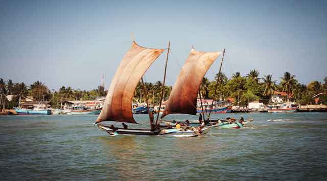 Nach einiger Zeit trotze ich dem Geruch und begab mich wieder in das lautstarke Geschehen auf dem Inneren des Fischmarktes. Erstaunt stellte ich die Ausmaße des täglichen Fangs fest und konnte nicht nur verschiedene Fischarten sondern ebenso Stachelrochen und Thunfische erblicken, deren Größe weit über die Spanne meiner ausgestreckten Arme hinaus gingen. Aus weiter Ferne sah ich, dass sich bereits die traditionellen Fischerboote mit dem Namen „Oruwas“ näherten. Ein toller Anblick tat sich auf, als diese dem Hafen entgegensteuerten. Die bräunlichen großen Segel erinnerten mich stark an die Wikinger-Filme meiner Kindheit. Erst aus näheren Entfernung erkannte ich, dass es Katamarane sind, mit denen die Fischer ihren Fang auf dem Indischen Ozean betreiben.