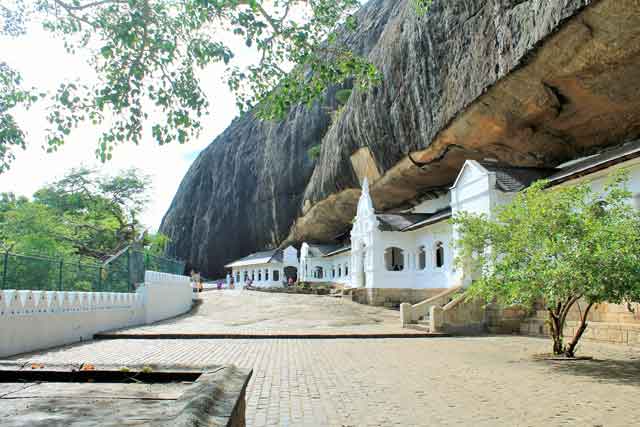 Dambulla hieß unser nächstes Ziel. Genauer gesagt, wollten wir uns den Besuch im berühmten Höhlentempel nicht nehmen lassen. Ein immenser, vergoldeter Buddha zierte den Eingangsbereich und gab hinter sich den Weg auf den Felsen frei. Kika hatte sich auf dem Hinweg am Straßenrand eine frische Wassermelone gekauft und freute sich bereits darauf, diese am Gipfel des Berges genüsslich zu verspeisen. Falsch gedacht! Diesen Plan hatte sie ohne die große Anzahl an Affen gemacht, welche sich auf dem Fels tummelten und nur auf die nächste Möglichkeit zu warten schienen, ihre nächste Beute zu ergattern. Kurzerhand legten wir fix eine Pause und vernaschten die leckere Wassermelone im Eiltempo, bevor es die Affen tun konnten. Der Höhentempel hielt eine riesige Anzahl an Buddha Statuen bereit, die in mehreren Räumen aufgereiht waren. Die niedrigen Decken der Säle zierten bunte Malereien und auch der Blick in die Ferne hielt wiedermal eine atemberaubende Aussicht parat, der selbst noch denüber Kilometer entfernten Löwenfelsen erkennen ließ. ![]()