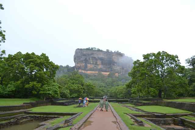 Am nächsten Morgen standen wir früh auf, um vor den meisten anderen Touristen auf Sigiriyas Löwenfelsen zusteigen, der seinen Namen den Löwen zu verdanken hat, die einst hier gesichtet wurden.Nach einem leckeren Frühstück mit viel frischem Obst, bei dem uns tatsächlich Affen besuchten, ging es per Tuktuk in Richtung des Felsen. Schon um halb 8 Uhr morgens, als wir dort ankamen, war es jedoch sehr voll, obwohl zurzeit keine Hauptsaison ist. Schon am Fuße des Felsens wird man von seiner Größe und der Schönheit der Natur, welche ihn umgibt beeindruckt.![]()