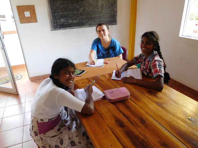 Das Angels Home ist nun seit circa drei Tagen auch mein Zuhause. Als ich am Sonntag nach meinem zehnstündigen Flug am Flughafen in Colombo landete, war ich wirklich sehr aufgeregt. Ich holte mein Gepäck ab und ging in die Vorhalle des Flughafens.Nun überlegte ich, wo ich am besten auf den Fahrer und Janika, die andere Praktikantin hier im Angels Home, warten soll. Ich erklärte den Taxifahrern am Flughafen, dass ich kein Taxi brauche und lief noch einige Minuten quer durch die Vorhalle des Flughafens und dann fuhrein Bus vor aus dem Janika mir fröhlich zuwinkte.Ich war wirklich sehr, sehr glücklich, dass ich vom Flughafen abgeholt wurde. Ich stieg in den Bus ein und da lächelten mich auch schon zwei ältere Mädchen aus dem Angels Home schüchtern an. Wir hielten nach einer halben Stunde Fahrt kurz am Straßenrand an und kauften für alle eine Kokosnuss, die mich nach der langen Reise wirklich sehr erfrischte! Nach circa einer Stundekamen wir dann im Angels Home an und ich wurde sehr nett von Frank und Julia und den anderen Praktikantinnen empfangen, sodass ich mich wirklich sofort wohlfühlen konnte. Am Nachmittaggingen wirzusammen runter, da nun Tea – Time auf der Tagesordnung stand. Dort saßen dann auch schon die meisten Mädchen, die hier im Angels Home leben, an einem großen und langen Tisch, die mich niedlich anlächelten. Julia stellte mich den Mädchen vor, doch die meisten von ihnen wussten schon, dass ich Nadine heiße und nun für die nächsten zwei Monate im Angels Home leben werde. Am Nachmittag spielten wir dann noch alle zusammen Volleyball, was mir wirklich sehr viel Freude bereitete und ich in der folgenden Nacht umso besser schlafen konnte.