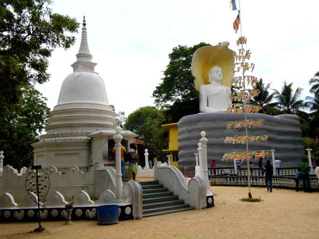 Na gut, genug davon. Ich möchte euch auch noch ein bisschen von meinem letzten freien Tag berichten – den verbrachte ich in Chilaw. Chilaw ist ein kleine Hafenstadt mit einem schönen, langen und unverschmutzten Strand, einem kleinen Fischmarkt am Hafen und einem Stadtzentrum, in dem wie überall in Sri Lanka Chaos herrscht. Nach erfolgter Stadtbesichtigung fuhr ich noch mit einem TukTuk zu den nahegelegenen Tempeln. Die beiden direkt nebeneinander liegenden Tempel, einer buddhistischer und ein Hindutempel, sind sehr beeindruckend. Viele Gläubige beteten dort und brachten Opfergaben für ihre Götter.