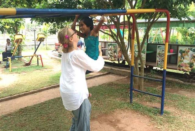 Wenn das Abendessen gegessen ist, die Zähne geputzt sind und die Mädels (weil Ferien sind) noch ein Stündchen TV schauen dürfen (das Programm ist wohl das schlimmste, was ich je gesehen habe, das trieft einfach nur vor Kitsch), versuchen Olga und ich, dem Personal Englisch beizubringen. Das ist natürlich nicht so einfach, weil wir beide kein Wort Sinhala sprechen. Mit Händen, Füßen und Bilder und viel Motivation von den Frauen, haben wir in letzter Zeit große Fortschritte gemacht. Als Dankeschön kriegen wir ganz leckeres Essen, was unserer Figur, die eh schon breiter geworden ist, seit wir hin sind, nicht so zuträglich ist. Das Essen hier ist aber zu lecker, auch wenn es scharf ist und ich manchmal schon den Käse vermisse.