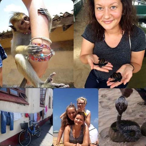 Wir sind danach zum Strand gefahren, um schnorcheln zu gehen. Da wir von Ranjith viele gute Ratschläge bekommen haben, haben wir für die Masken wenig gezahlt und sind ins Meer gesprungen um Fische anzugucken. Leider war die See etwas trüb, aber trotzdem haben wir viele schöne Fische gesehen, und waren sogar von einigen Schwärmen umringt. Irgendwann ist uns aufgefallen, dass wir seit langer Zeit nichts gegessen hatten und sind am Abend in ein kleines schönes Lokal am Strand gegangen, um da beim Sonnenuntergang super leckere Sachen zu essen. Als die Sonne fast gerade untergangen war sind wir auf LaLa gestoßen, mit seinen Affen Micheal, seiner Python Babara und seiner Kobra. Anfangs war ich skeptisch wegen der Haltung der Tiere und haben ihn darüber ausgefragt. Es war aber ein tolles Gefühl eine Schlange auf dem Körper zu haben und einen Affen zu streicheln.