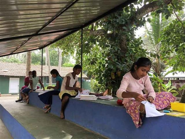 Die Mädchen des Angels Home sind auf drei Schulen verteilt. Die meisten Kinder gehen auf die nur wenige hundert Meter entfernte buddhistische Schule. Vier Mädchen können bisher eine etwas gehobenere katholische Mädchenschule besuchen, die besser ausgebildete Lehrer beschäftigt und somit einen qualitativ hochwertigeren Unterricht gewährleisten kann. Auch diese Schule ist kostenlos, es wird allerdings ein Eignungstest vorausgesetzt, den die Mädchen bestehen müssen. Wir haben aber auch vier Förderschülerinnen, auf deren Schule körperlich sowie geistig behinderte Kinder, verhaltensauffällige Kinder oder auch, wie im Falle unserer Mädchen, einfach Kinder, die eine gesonderte Förderung benötigen und auf einer normalen Schule nicht bestehen würden, gehen. Leider kann bei der Vielzahl der unterschiedlichen Defizite keine individuelle Förderung stattfinden. Kinder mit besonderen Ansprüchen fallen in Sri Lanka – oder zumindest in den ländlichen Gegenden wie Marawila – also leider durch das Raster.