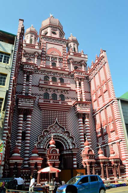 Ich wollte unbedingt noch die Jami ul Alfar Mosque sehen, welche sich im Westen von Pettah befindet. Von daher habe ich mich zu Fuß auf den Weg dorthin gemacht: es war laut, es war voll und es lagen ziemlich verschiedene Gerüche in der Luft. Alles in allem ein ziemlich buntes und chaotisches Stadtviertel. Wer keine Menschenmassen mag, sollte es meiden. Trotzdem bietet die Moschee einen ziemlichen beeindruckenden Anblick, vor allem da sie sich inmitten der anderen Gebäude befindet.![]()