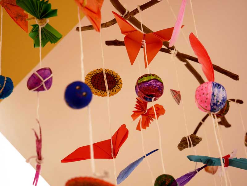 Also haben wir letzten Samstag gemeinsam kleine Mobiles mit Dingen aus dem Bastelraum, dem Garten und vom Strand gebastelt und diese am Montag auch im Treppenaufgang aufgehängt. Die Mädchen hatten viel Spaß dabei und ich für meinen Teil fand es sehr schön zu sehen, wie sich alle Mädchen - sogar ein paar der Größeren- beteiligten. Und ich würde sagen, dass diese gemeinsame Zeit auch etwas in der Bindung zu den Kindern verändert oder gar verstärkt hat.