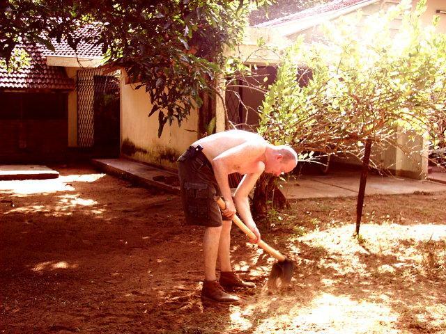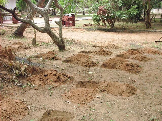 So langsam wird aus dem Dschungel wieder ein Garten. Am Ende der Woche denke ich, dass die gröbsten Arbeiten erledigt sind. Danach fangen wir an, einen großen Gemüsegarten anzulegen. Das spart uns hinterher eine Menge Geld bei der Verpflegung und wir wissen, woher es kommt. Bereits jetzt haben wir schon zahlreiche Kokospalmen, ( Marawila heißt auch "The Golden Kokonuts Area", bekannt für die besten Kokosnüsse) Mango, Papaya, eine Art Kiwi , nur doppelt so groß, jede Menge Gewürze und Kräuter in unserem Garten.