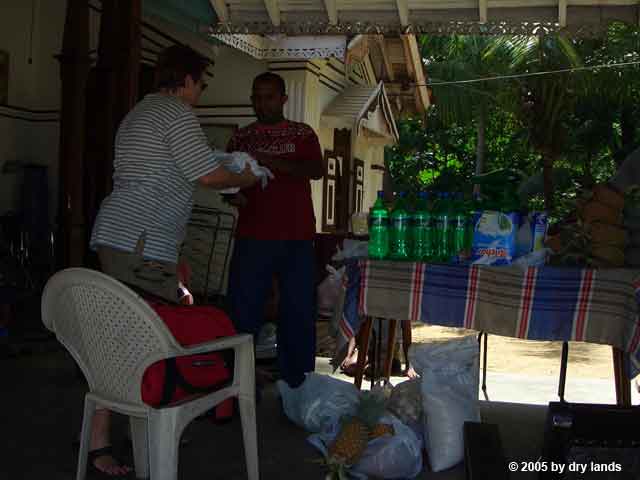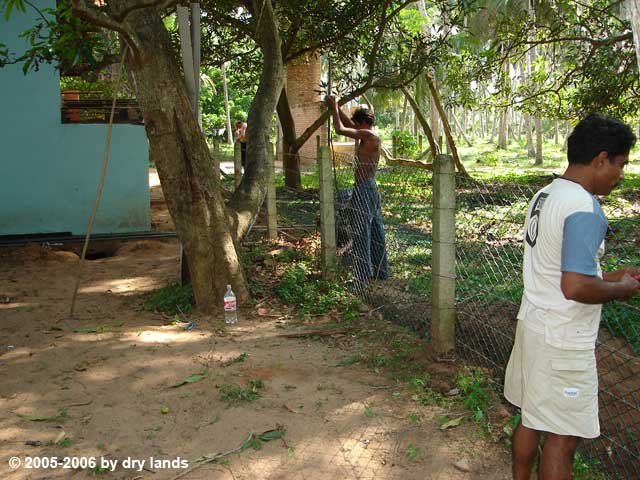 Dann ist der nächste Besuch (Volker Krebs) aus Deutschland eingetroffen, es geht hier zu wie im Taubenschlag. Hierzu gibt es auch eine witzige Geschichte. Am Anfang habe ich von einer Familie in Unawatuna berichtet. Volker Krebs war vor Jahren Gast bei der Familie in ihrem kleinem Strandhaus. Seit dem Tsunami versuchte er, bei den Behörden die Familie ausfindig zu machen. Leider ohne Erfolg, bis er zum Schluss durch Zufall die beiden auf meiner Homepage entdeckt hat. Danach hat er beschlossen, mich hier zu besuchen. Er war ganz begeistert von dem Grundstück und dem Haus, sodass er beschloss, nach dem Besuch von Nimal und Kumudu, hierher zurück zukehren und mich bei der Arbeit noch etwas zu unterstützen. Aber davon mehr nächste Woche. Morgen fangen wir an, die Wände für das Kranken - und Umkleidezimmer zu mauern. In der nächsten Woche geht es also hoch her......Morgen früh um 10 Uhr kommt Anne Chrismalee, am Dienstag das zweite Kind, die nette Dame vom Amt mit der Genehmigung, der Besuch aus Germany und den Rest verrate ich noch nicht......