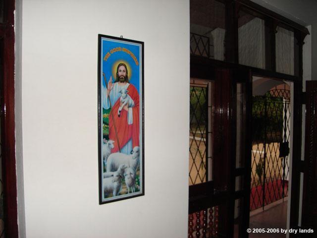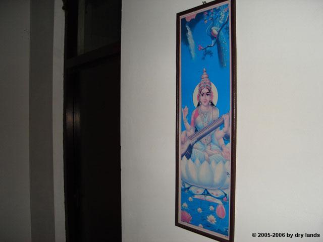 Auf den nächsten Fotos seht Ihr einige Bilder, die ich aus 2 Gründen gekauft habe. Zum einen, damit die Wände nicht mehr so leer aussehen und zum anderen weil die Menschen hier sehr gläubig sind und jeden Tag beten. Da Kinder der verschiedensten Religionen hier sein werden, habe ich dementsprechend auch die Bilder ausgesucht. Auf den ersten beiden Bildern ist.... Na seht ihr ja selbst ! Auf dem dritten Bild ist die tamilische Göttin der Musik abgebildet. Nr. 4 ein Bild für die Buddhisten. Persönlich finde ich das Bild mit dem Buddha am schönsten.