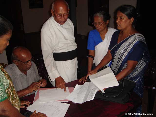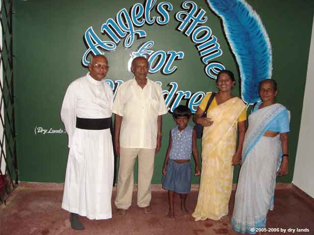 Nun ist es soweit: Das Dry Lands Projekt wird als Organisation in Sri Lanka eingetragen. Das Angels Home hat alle Vorraussetzungen erfüllt, um die Pforten zu öffnen. Allerdings wie bei uns auch, bekommen wir erst die vorläufige Erlaubnis. Nächstes Jahr um diese Zeit dann die endgültige. Bis dahin sind wir erstmal auf uns selbst gestellt. Nach der endgültigen Erlaubnis bekommen wir auch die staatliche Unterstützung, obwohl diese sehr minimal ausfällt. Aber ich bin schon froh, das s wir es ohne größere Probleme geschafft haben, das Angels Home in so kurzer Zeit zu öffnen. Das habe ich zum einen Euch zu verdanken und zum anderen einigen Freunden hier, die mir mit Rat und Tat zur Seite stehen. Unter anderen Vater Richard, Norbert Rererc, Lilian Ziuk und G.Gallage, siehe Foto.