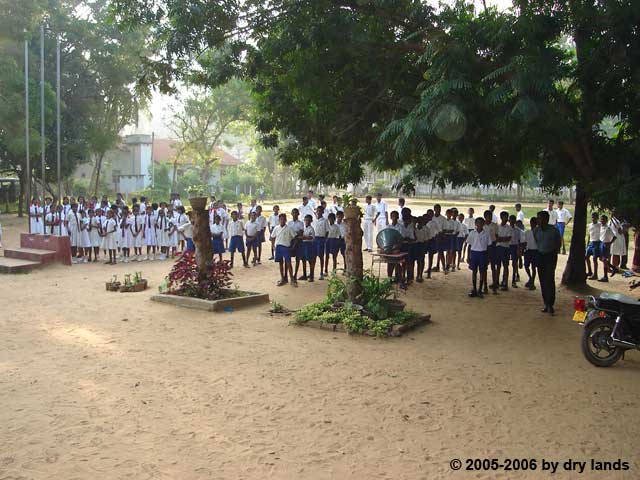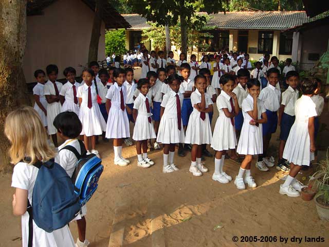 Heute morgen, 7:30 Uhr...Ein lautes Schreien hallt über den Hof ! Als ich aus dem Haus ging, standen ca. 50 Kinder vor dem Tor, die Anne und Nina zur Schule abholen wollten. Aber die beiden waren noch nicht fertig. Ich sagte ihnen, dass sie gleich nachkommen. Sie verabschiedeten sich, und ich ging wieder ins Haus. Keine 5 Minuten später wieder ein Schreien, die nächsten Kids standen vor der Tür, um die beiden abzuholen. Nun waren die beiden auch so weit, und ab ging es in die Schule. Magnus musste mit in die Schule, denn er wurde von dem Direktor gebeten, einen kleinen Bericht zu schreiben. Was er beruflich macht, wie sie leben und welche Schulfächer Nina in der Schweiz hat . Jeden Morgen um 8.00 Uhr wird in der Schule zum Appell aufgerufen, wo die Schüler jeden Morgen die News vorlesen.