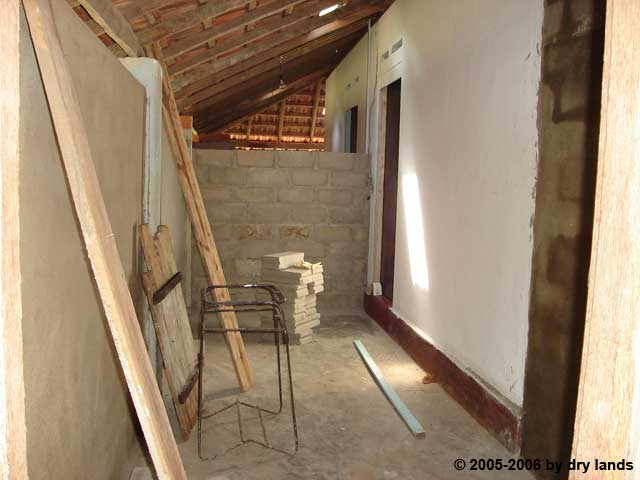 Die Wände stehen alle und sind auch schon fast komplett verputzt. Ich denke, dass wir zum Wochenende anfangen können, alles zu streichen und das bis Mitte der Woche die zwei neuen Räume auch fertig sind. Da in den Zimmern so gut wie kein Tageslicht ist, wollten wir Fenster einbauen. In der Außenmauer macht es aber keinen Sinn, da wir dort die Kleiderschränke bauen. Einigermaßen vernünftige Kleiderschränke, die auch etwas halten, sind relativ teuer hier. Wir hätten 7 Schränke benötigt, wo die Kosten bei ca. 650 € liegen würden. Deswegen mauern wir uns jetzt welche, Regalbretter rein, Türen vor und fertig. .. Kosten ca.350 €. ....Genauso wie mit den Dachfenstern. Sie sind sehr teuer, deswegen finde ich, dass eine normale Glasscheibe auch ausreicht. Sieht zwar optisch nicht so schön aus, erfüllt aber den Zweck. Auf dem letzen Foto ist das zweite Kinderzimmer zu sehen. Es gewinnt zwar keinen Preis für das beste Styling, aber dafür, dass wir kaum Werkzeug hier haben, ist es uns ja einigermaßen gelungen ( Grins) .