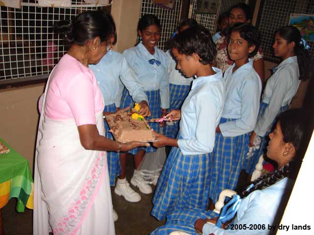 Wir haben heute eine Geburtstagskind!!! Anne Chrismalee, erst vor ein paar Tagen bei uns eingezogen, hat heute Geburtstag und wird 7 Jahre Alt. Ihr Onkel kam vorbei, und ich war ein wenig überrascht, da er erst am Sonntag kommen wollte. Es sagte, dass Anne heute Geburtstag hat. Ich habe mir die Papiere von Anne zwar angesehen, aber da sie auf Singhalesisch sind, habe ich sie direkt zum Office zur Überprüfung geschickt. Also habe ich meinen Freund angerufen, der in der Nähe eine Bäckerei hat und habe eine Geburtstagstorte bestellt. In der Zwischenzeit bin ich mit Anne in die Stadt gefahren, und sie durfte sich ein Geschenk aussuchen. Voll süß, als ich sie fragte, was sie denn gerne haben möchte, ging sie in die Lebensmittelabteilung und kam mit einer Orange wieder. Ich war ja froh, dass es keine sprechende Barbiepuppe, ein Musik -anlage oder ein Pferd war ....Wir gingen dann in die Abteilung Spielwaren, wo sie sich eine Magnettafel mit dem Alphabet aussuchte. Das fand ich auch gut, und wir gingen zur Kasse , um zu bezahlen. Als wir dort waren, kam Tzumit der Inhaber vorbei, und Anne erzählte ihm ganz stolz, dass sie heute 7 Jahre alt geworden ist und was sie geschenkt bekommen hat. Ich schaute nur Tzumit an und fragte ihn, wo denn sein Geschenk sei? Er nahm Anne an die Hand und sie durfte sich noch was aussuchen. Na , was kann es Schöneres geben, als ein Spielzeughandy, das ständig laute schrille Melodien spielt ???