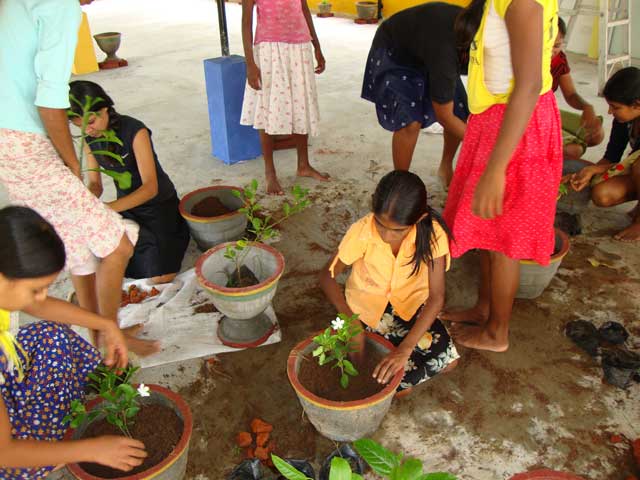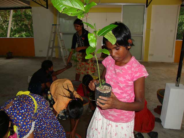 Auf den nächsten Bildern seht ihr, wie die Kinder schon anfangen, aus der Dachterrasse einen Botanischen Garten zu gestalten. Sie pflanzen hier Chili, Pfeffer, Zimt; Passionsfrucht, Mangos, Blumen etc., um nur einiges zu nennen.