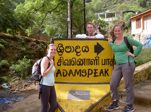 Nach der Woche in Marawila sind wir dann ins Hochland aufgebrochen um den Adams Peak zu besteigen. Julia hat uns begleitet. Für sie war es bereits der dritte Aufstieg. Für Rieke war es die zweite Tour und ich habe mich zum ersten Mal an den Aufstieg gewagt. Ein befreundetet Paar (Henning und Kathi, die ebenfalls einen Besucherbericht geschrieben haben) war zur gleichen Zeit ebenfalls auf Sri Lanka und haben uns begleitet. Insgesamt waren wir also zu fünft. Gleich zu Beginn des Aufstieges, der um ein Uhr nachts begann, haben wir eine Rotte Wildschweine mit Frischlingen getroffen. Wir waren zunächst etwas verunsichert, da man ja weiß, dass die Muttersäue mit Vorsicht zu genießen sind. Julia hat dann die Wildschweine, ohne mit der Wimper zu zucken, verjagt.